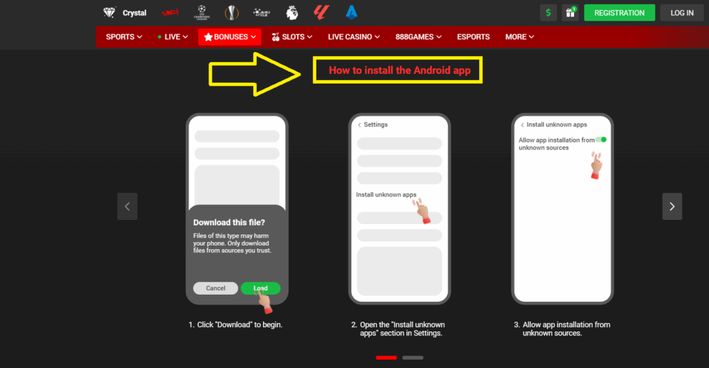 To do this, you need to log in to the site and follow the instructions. Free download of 888Starz Android is fast and allows you to start betting immediately. You should not use dubious links and unverified web resources.